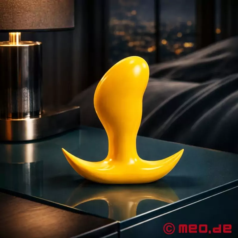 Rumeni analni čep je izdelan iz visokokakovostnega silikona z žametno mehko površino. Material je prijeten na koži, dimenzijsko stabilen in hkrati dovolj prožen, da omogoča udobno vstavljanje. Rezultat je analni čep, ki tako začetnikom kot naprednim uporabnikom ponuja intenzivno, a nadzorovano občutenje.