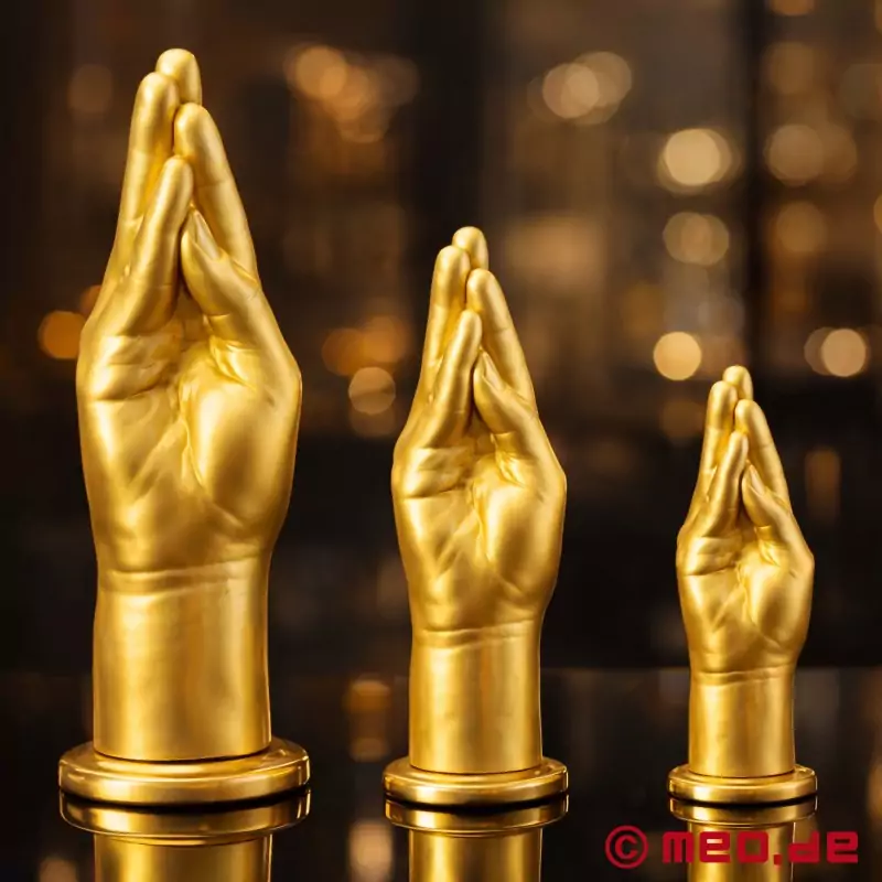 Zlata roka za fisting iz serije Extremeo ima izjemno realistično obliko, ki vam omogoča skoraj pristno izkušnjo fistinga. Ta analni čep je izdelan iz visokokakovostnega tekočega silikona, materiala, znanega po svoji prožnosti, vzdržljivosti in koži prijaznih lastnostih, zato zagotavlja največje udobje in varnost med fistingom. Zaradi močne podlage s priseskom lahko čep enostavno pritrdite na gladko površino ter svobodno in neovirano uživate v vseh možnih položajih.
