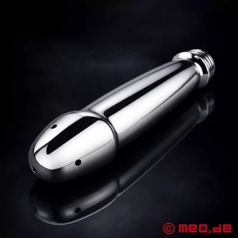 SteelGlide™ podjetja MEO® je analni tuš iz kromirane kovine, ki omogoča nežno in nadzorovano analno čiščenje. Na voljo je v dveh velikostih in je primeren za vse, ki se želijo higienično pripraviti na analni seks ali preprosto, neposredno in zanesljivo izvajati svojo intimno higieno.