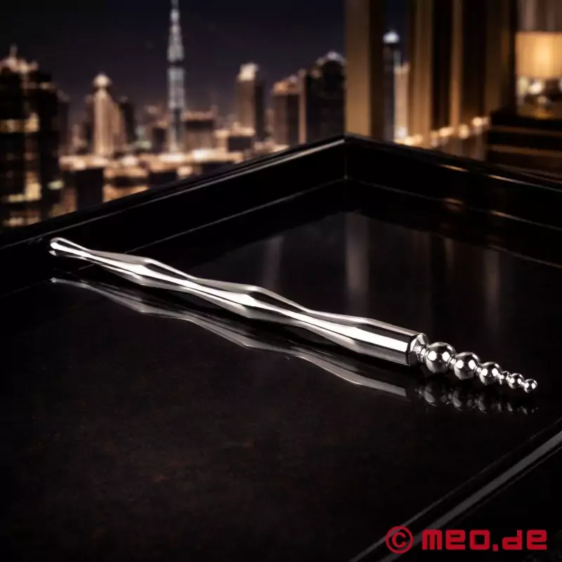 Cette sonde est un must, utilisée dans un sens (boules en premier) elle permet d'ouvrir l'urètre en douceur. Utilisée dans sa grande longueur, elle vient stimuler doucement la prostate au rythme de la masturbation. Je la laisse descendre doucement dans ma queue, quand les 15mm ont passé le resserrement du méat urinaire et que seules deux petites boules dépassent du gland je me branle doucement jusqu'à une éjaculation somptueuse.