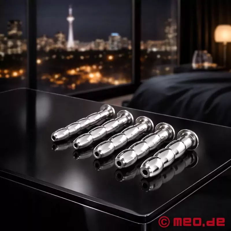 Dilatator penisa je izpolnitev vseh sanj in obljuba še posebej izjemnega užitka. Čep za penis MEO® je izdelan iz visokokakovostnega nerjavečega jekla in ima zaobljeno konico, ki olajša vstavljanje. Posebej vznemirljiv element je trojno ukrivljena gred, ki vašo izkušnjo naredi še intenzivnejšo in vas med masturbacijo postopoma katapultira v užitkarske višave.