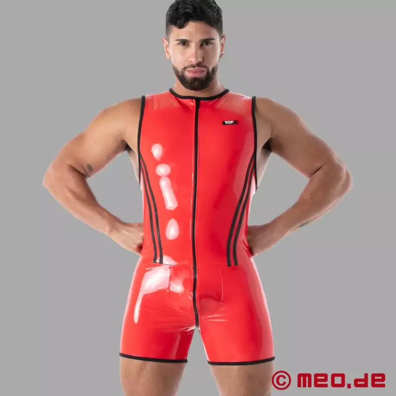Kadar morata stil in seksapil hoditi z roko v roki ter je potreben praktičen in seksi videz, je ta rdeči lateksni bodi s polno zadrgo popolna izbira. Material se prilega kot druga koža, je tesen, vendar trpežen in poudari silhueto. Zadrga po vsej dolžini od vratu do dna je močan in funkcionalen poudarek, črne kontrastne črte pa poudarjajo obline telesa. Notranji zaščitni trak pod zadrgo preprečuje, da bi se koža ali lasje ujeli, in zagotavlja večje udobje. Oblikovano in izdelano v Parizu v Franciji.