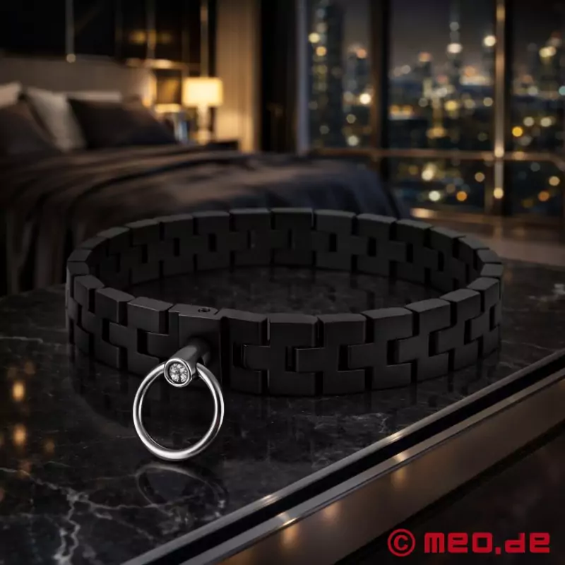 Ovratnica Spartacus™ BDSM je zelo posebna ovratnica, pri kateri so posamezni členi kovinskega pasu med seboj povezani kot ročna ura. Nastavljiva velikost zagotavlja, da se ovratnica Spartacus™ popolnoma prilega, medtem ko O-obroček, pritrjen na sprednji strani, daje prosto pot ustvarjalnosti. Prefinjen dizajn spretno skriva zaponko ovratnice in jo naredi za čudovit kos nakita, ki poudari tako vaš slog kot vašo podrejeno vlogo.