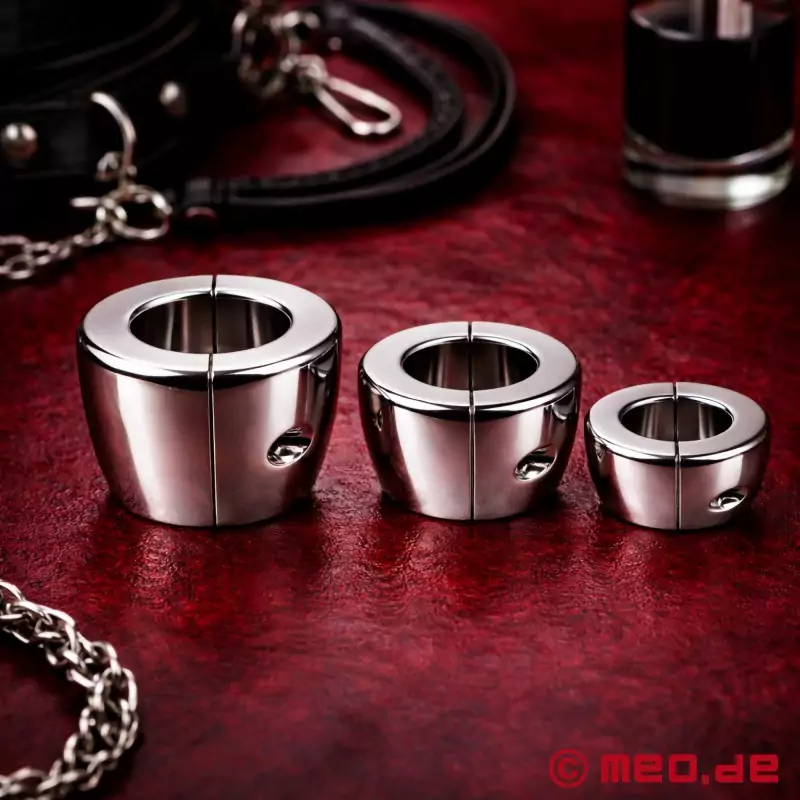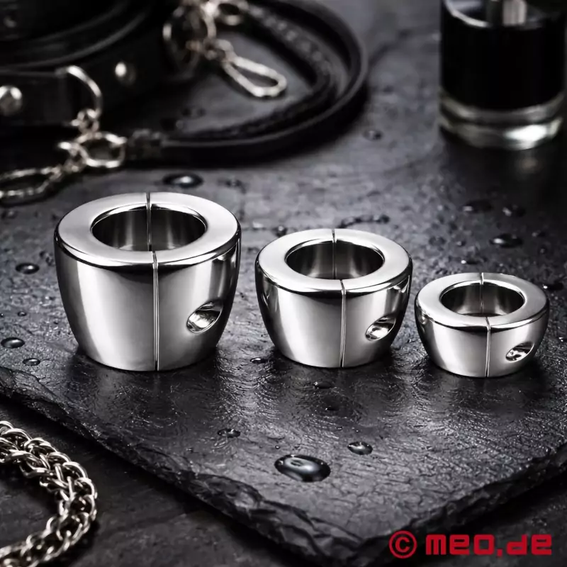 Trden, težak in zasnovan za jasno vidno raztezanje skrotuma. BellLock™ podjetja MEO® je kroglični nosilec iz nerjavnega jekla z obliko zvona. Njegova velika teža, ergonomska oblika in visokokakovostna dvodelna konstrukcija ustvarjajo intenziven, zelo neposreden učinek vlečenja in izjemno prisoten občutek.
