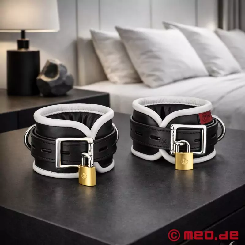 Z okovi za roko iz MEO ® niste le na varni strani, ampak lahko v bondageu s svojim partnerjem tudi 100-odstotno uživate. Pri nakupu okovov za vezanje se prepričajte, da se izbrani okovi prilegajo in so individualno nastavljivi po velikosti! To poveča udobje pri nošenju in vam zagotavlja dolgoletne užitke. Material, iz katerega so izdelane ročaji, mora biti trpežen in vzdržljiv, kot je kakovostno usnje, ki ga uporabljamo mi. Da boste dobro razpoloženi tudi po vezanju, upoštevajte tudi naša navodila za nego, ki jih seveda priložimo vsakemu paru okovov.