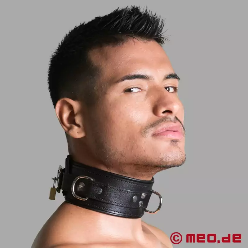 Sehr schöne, aufwendig gepolstertes Halsband mit dem man den Sub sehr gut führen oder auch mal sehr ernst dran ziehen kann. Klasse Material, bestes Leder (wie Nappa) und echt gut verarbeitet. Jederzeit wieder würde ich bei MEO dieses Halsband aus Berlin kaufen. Sehr zu empfehlen .