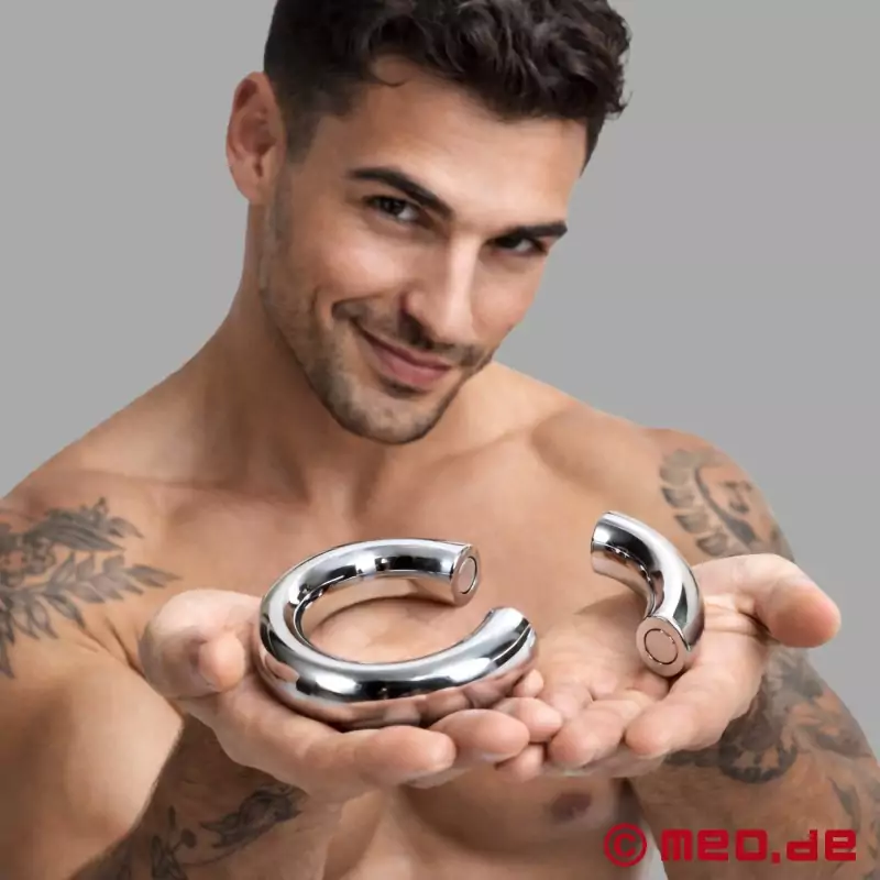 Močni magneti lahko motijo aktivne elektronske vsadke, kot so srčni spodbujevalniki ali implantirani defibrilatorji, pa tudi magnetno aktivirane vsadke. Zato je treba med vsadkom in magnetom ohraniti razdaljo najmanj 20 cm. Med magneti in železnimi predmeti lahko nastanejo velike privlačne sile. Zato je treba pri rokovanju paziti, da prsti ali koža ne pridejo med elemente (nevarnost zmečkanja). Magneti morajo biti oddaljeni od občutljivih predmetov, kot so kreditne kartice, nosilci podatkov ali ure. Magnetni obroček mora biti shranjen zunaj dosega otrok. Za shranjevanje je priporočljiva škatla MEO® The Box™ Prestige Edition (št. izdelka 10565/00) - praktična škatla za shranjevanje spolnih igrač.