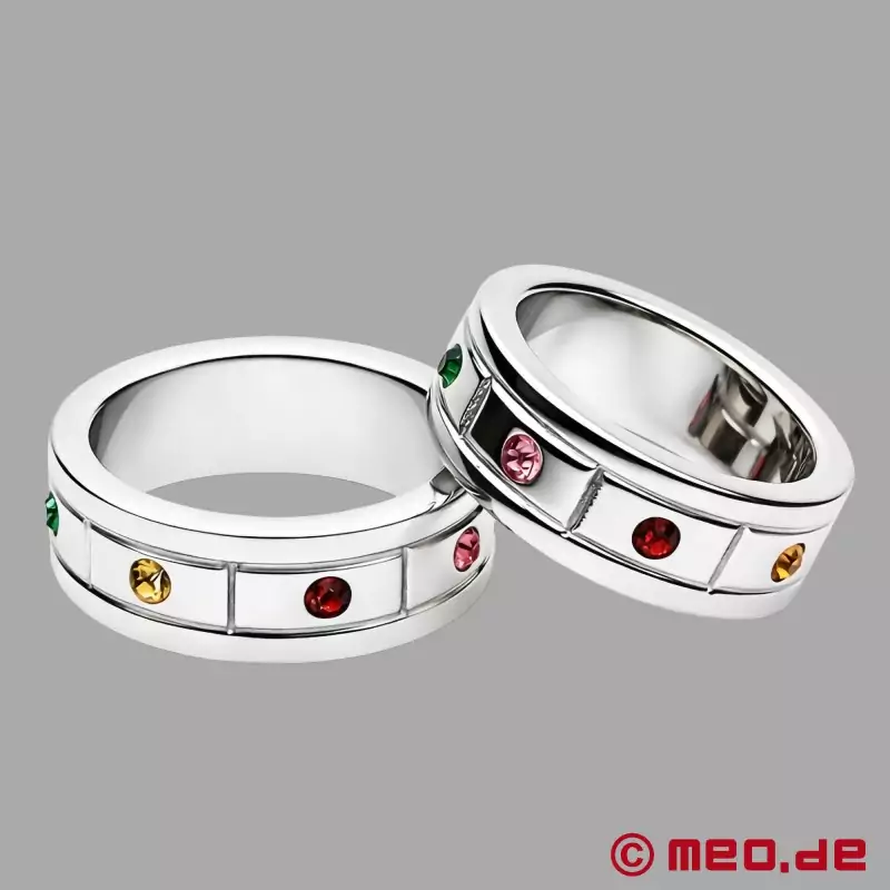 Ta veličasten prstan iz visokokakovostnega nerjavnega jekla ni le simbol okusa, temveč tudi zaveza k intenzivnemu užitku!Poklon lepoti in spolni moči: vsak prstan za penis je umetelno posajen z izbranimi večbarvnimi draguljnimi kristali, ki lovijo svetlobo in se bleščijo ob vsakem gibu. Natančno vdelani kristali obkrožajo celoten prstan in ustvarjajo učinek, ki izžareva razkošje in zapeljevanje.
