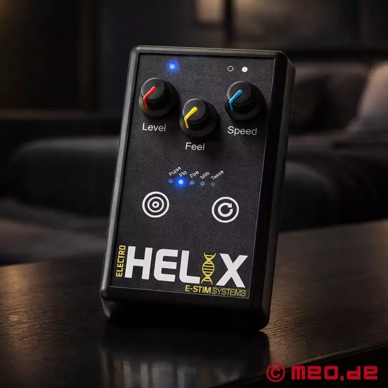 Podjetje E-Stim Systems je ElectroHelix™ z novo oblikovanim ohišjem naredilo manjši in lažji, tako da naprava za elektrostimulacijo dobro sede v roko in so vsi upravljalni elementi lahko dosegljivi. Zahvaljujoč gumiranim vrtljivim gumbom in površini, ki je odporna na razmazovanje, lahko napravo ElectroHelix™ upravljate tudi v rokavicah ali z mazilom na prstih in vedno varno sedi v roki. Za razliko od številnih drugih proizvajalcev se je podjetje E-Stim Systems odpovedalo akumulatorski bateriji in se namesto tega odločilo za preizkušeno baterijo PP3, ki zagotavlja dolg čas delovanja.