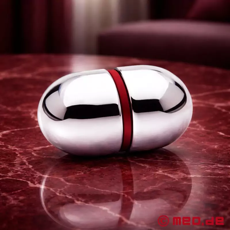 Pozdravljamo srednje veliko, povsem novo električno jajce E-Stim Systems. Enako lepo kot majhno električno jajce, vendar z rdečim izolacijskim obročem, ki ločuje dve polirani polovici jajca, in bistveno večje od svojega malega brata. Toda koliko večje? Premer je večji le za 8 mm, vendar je zaradi te majhne spremembe srednje električno jajce 2,5-krat večje. Zaradi tega se veliko bolje počuti v anusu in zagotavlja več odličnega občutka elektrostimulacije.