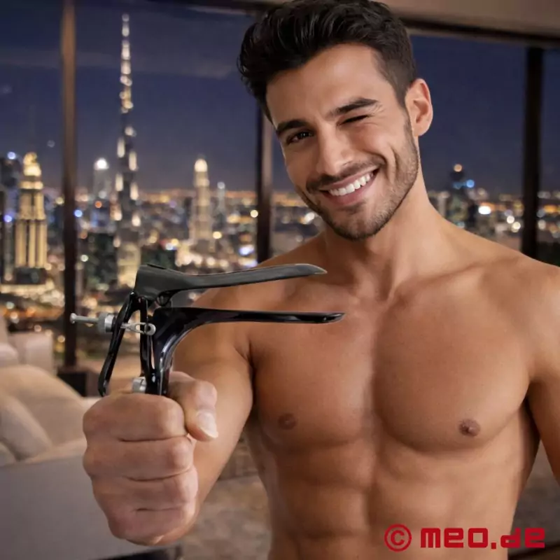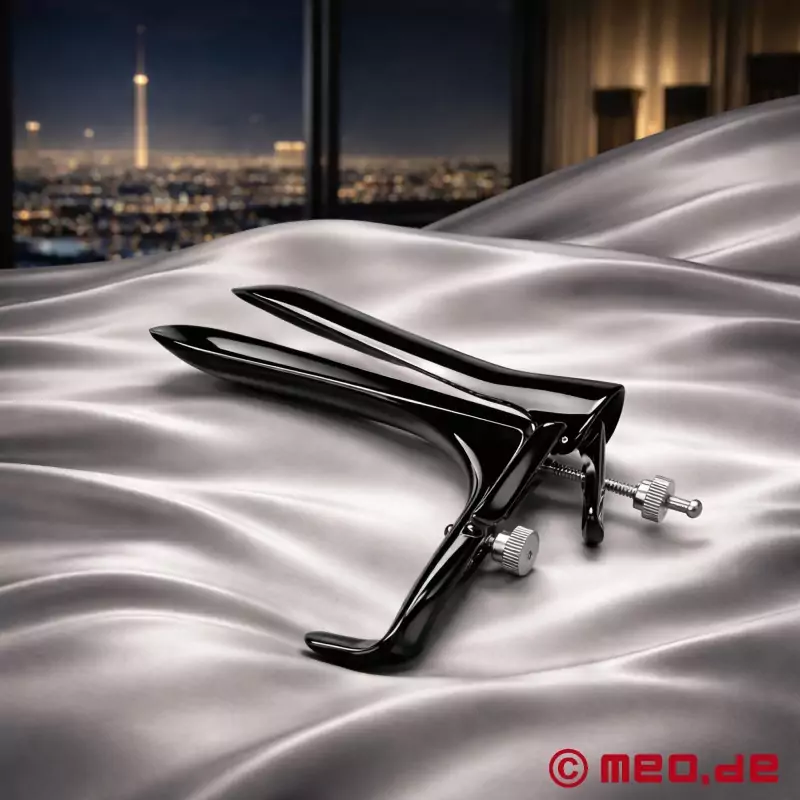 Ste pripravljeni na res globok poseg? Črni analni spekulum MEO® iz medicinskega nerjavnega jekla z elegantno črno prevleko široko odpre anus za analno raztezanje, pregled ali klinično igro vlog. Zaradi nastavljivih rezil in vijačnega mehanizma lahko analni razpršilec odprete do 9 cm, kar ponuja intenzivno izkušnjo za popolno predanost. Je razkošen, trpežen in brezkompromisen - nujen pripomoček za klinične fetišiste in vse, ki želijo uživati v ekstremnem analnem raztezanju.
